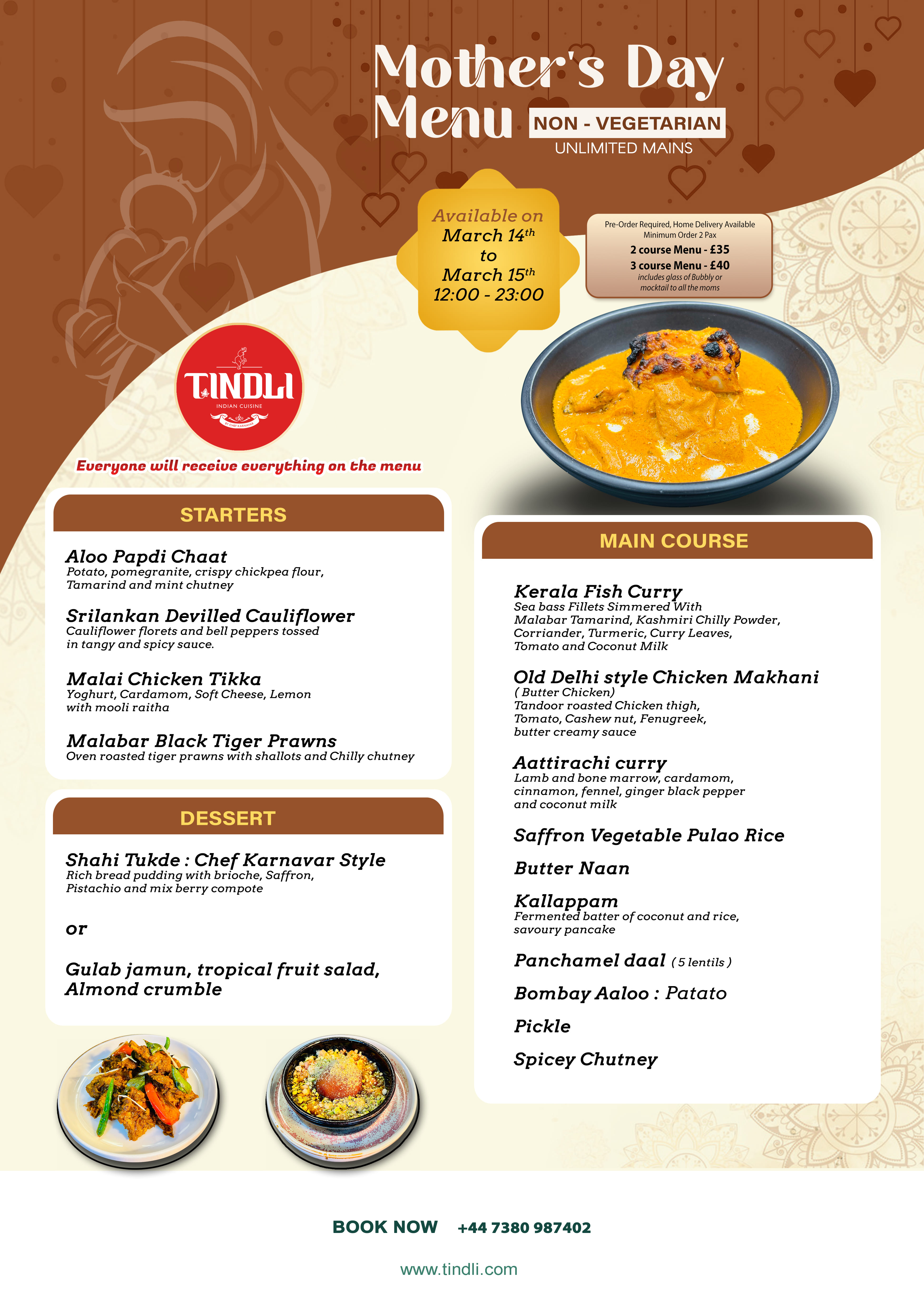 Explore your favourite dishes from the menu at Tindli Peterborough.