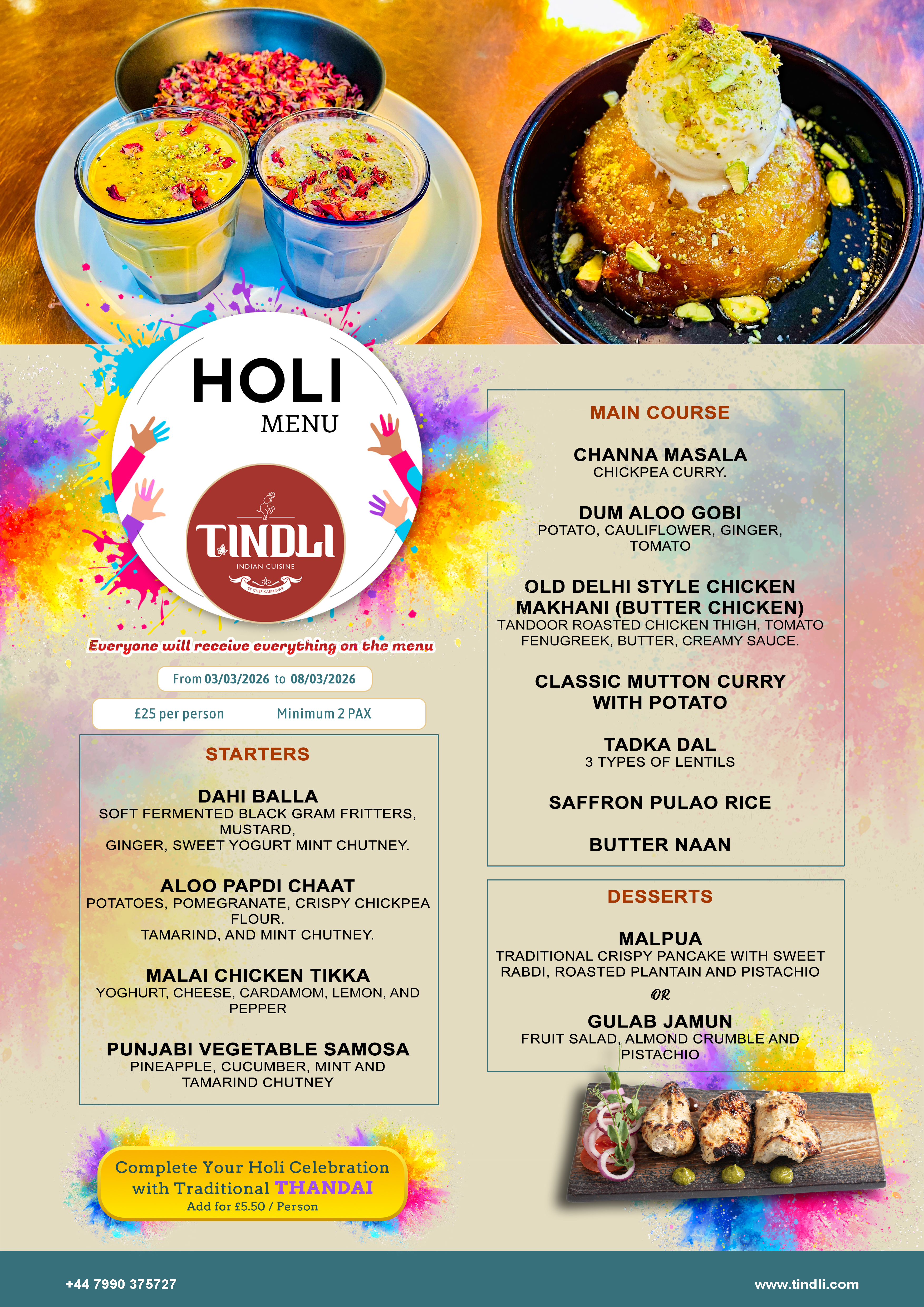 Explore your Holi Non-Veg dishes from the menu at Tindli Peterborough.
