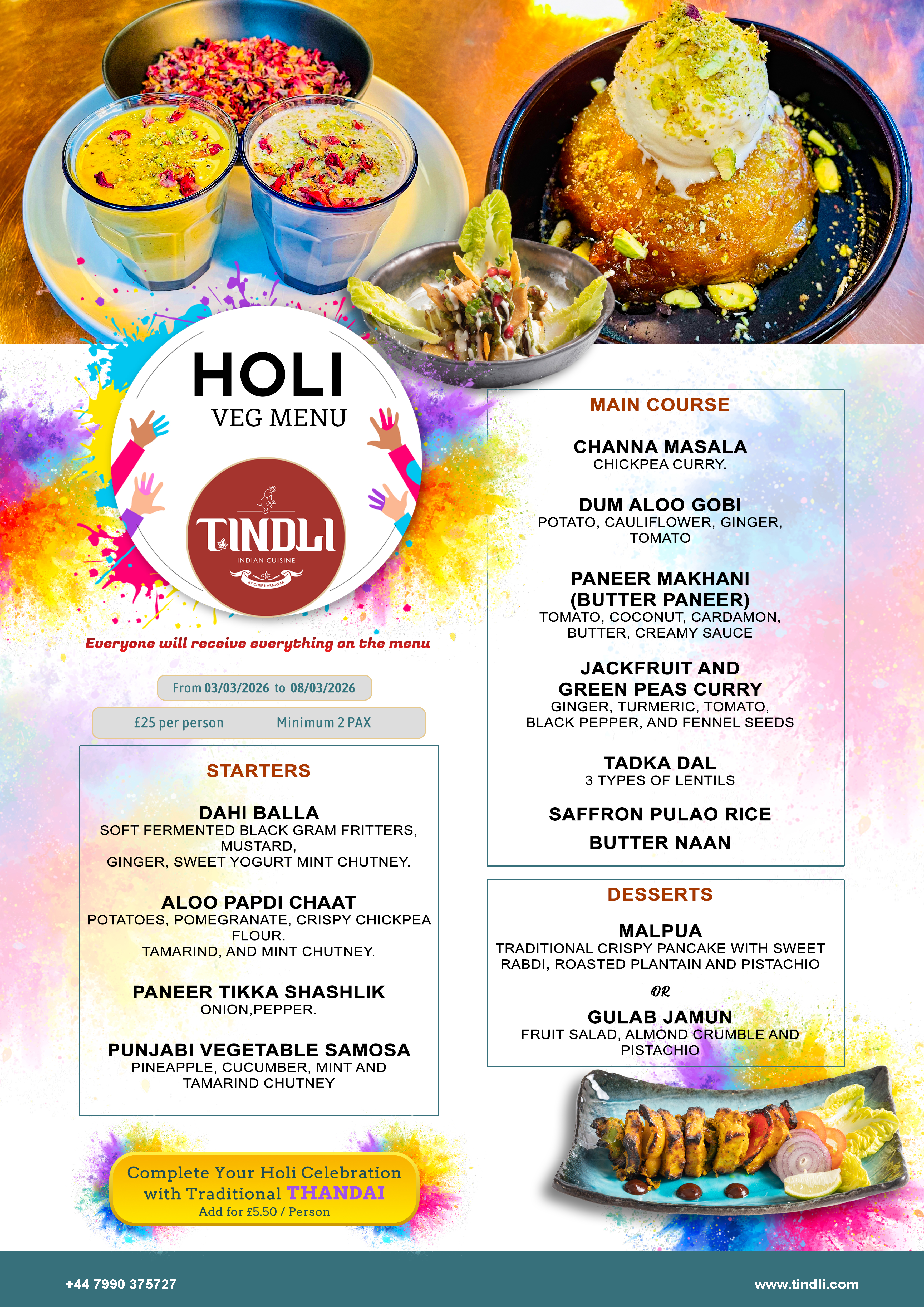 Explore your Holi Veg dishes from the menu at Tindli Peterborough.